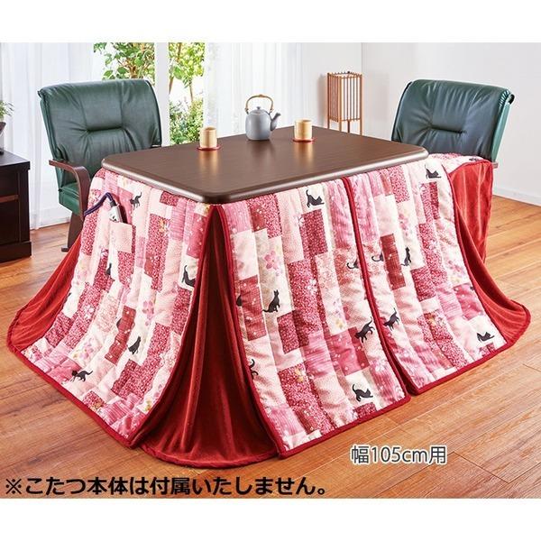 ダイニング こたつ布団 〔約幅135cm用 クロネコ〕 135×80+75cm 洗える 撥水機能 ポケット付 〔こたつ別売〕 〔リビング〕