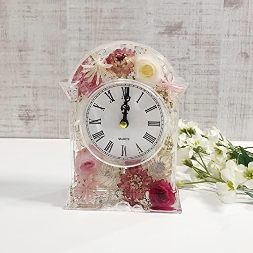 ・ピンクゴールド ・・Color:ピンクゴールド・全面にお花がたっぷり入った固まるハーバリウム時計です。・ローズとヘリクリサムを使用して作りました。 ピンクとホワイトがあたたかみ